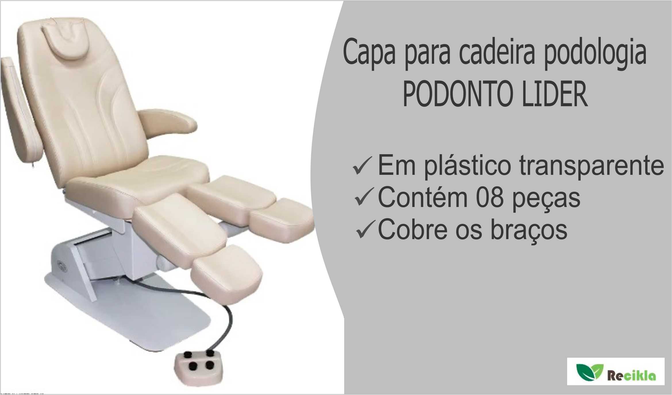 Capas plástica para Cadeira de Podologa Podontolider em plástico transparente super resistente nº 15 cristal, ótima adaptação da capa no equipo, encaixe profissional, não sai quando o cliente senta, fácil de instalar, fácil de tirar, fica bem fixa na cadeira.